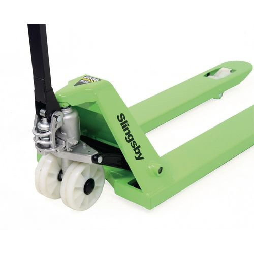 Slingsby Heavy Duty 2500Kg (2.5 Tonne) Pallet Truck With Three Position Control Handle and Tandem Nylon Rollers Green/Black - 413460 436835