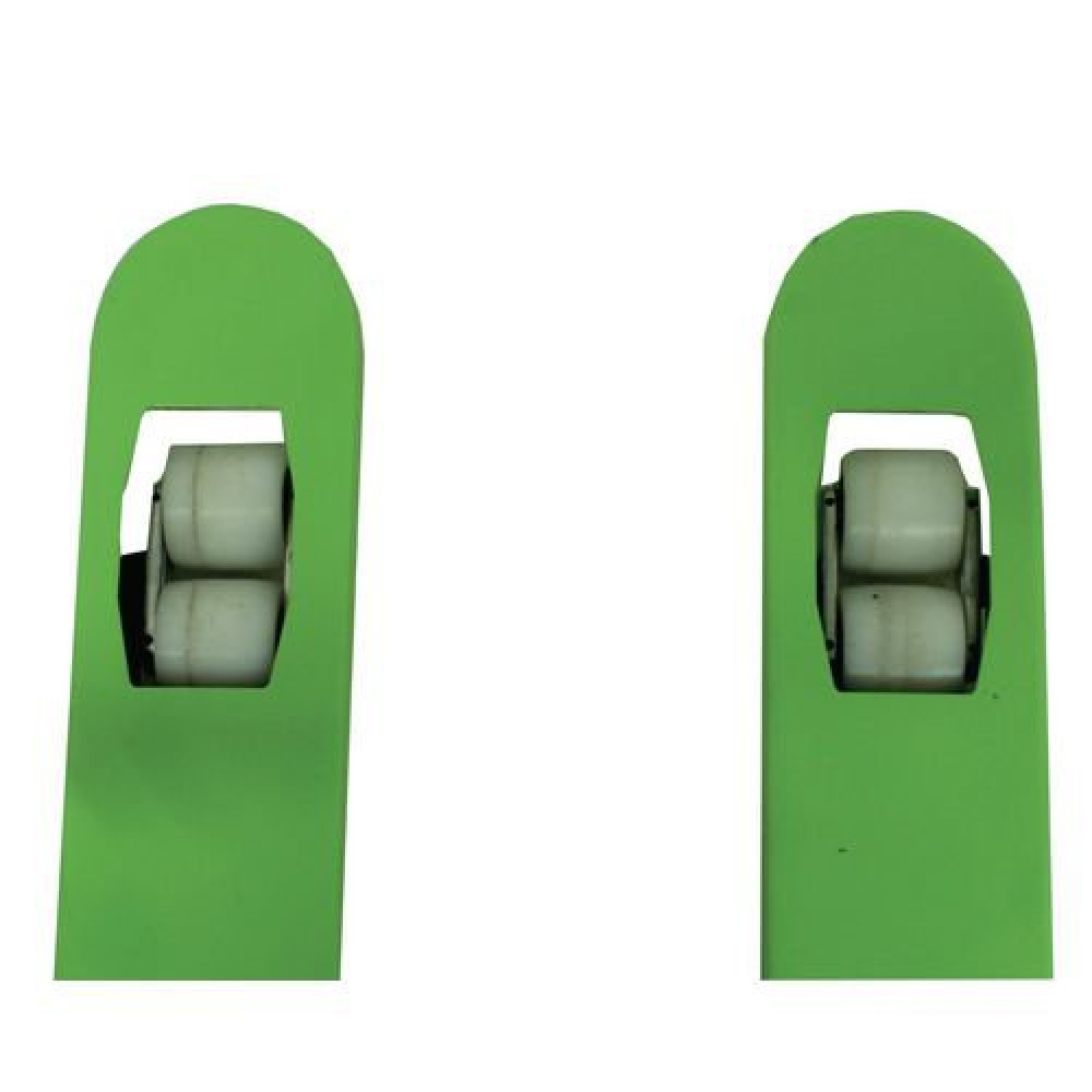 - On 175mm dia. nylon steering wheels, and 80mm dia. tandem nylon rear rollers