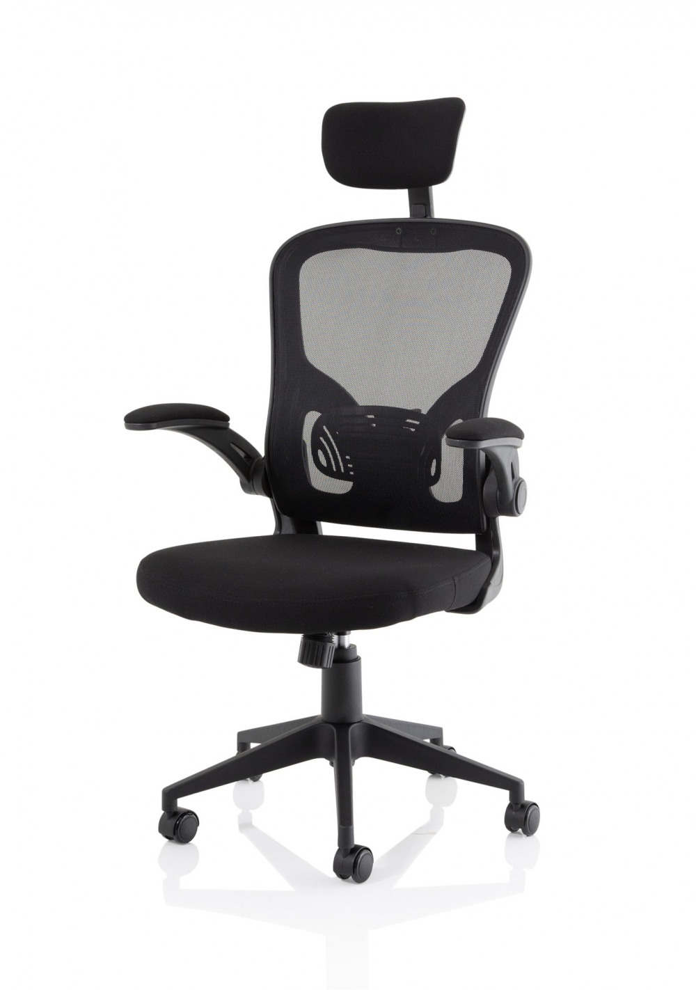 Ace Executive Mesh Back Office Chair With Folding Arms Fabric Seat Black - OP000317