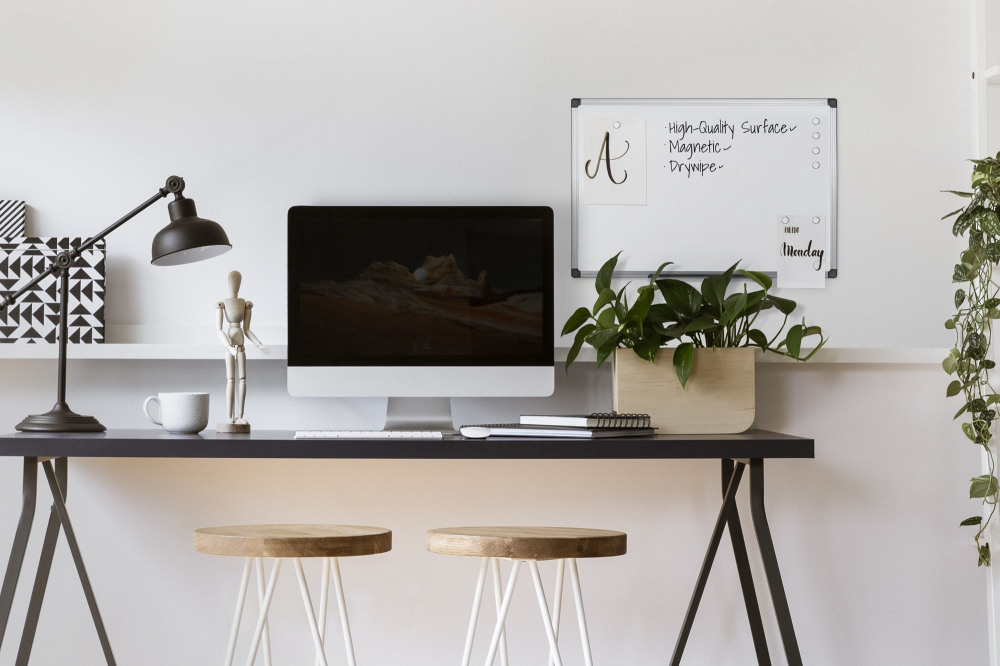 Bi-Office Maya Magnetic Melamine Whiteboard Grey Plastic Frame 600x450mm - MB0407186