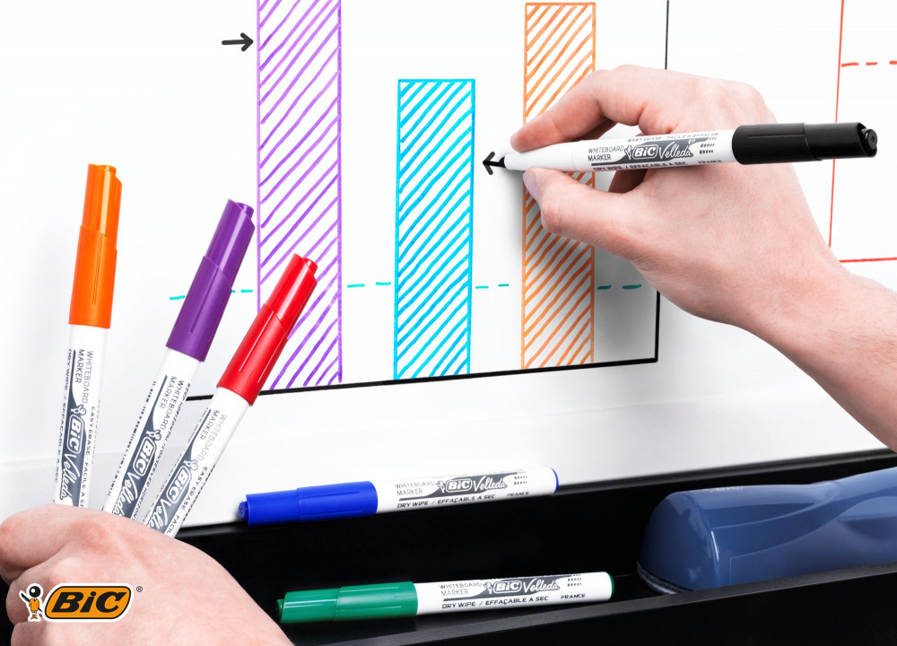 - Ketone-based bullet tip whiteboard marker in medium-sized barrel for ease of use