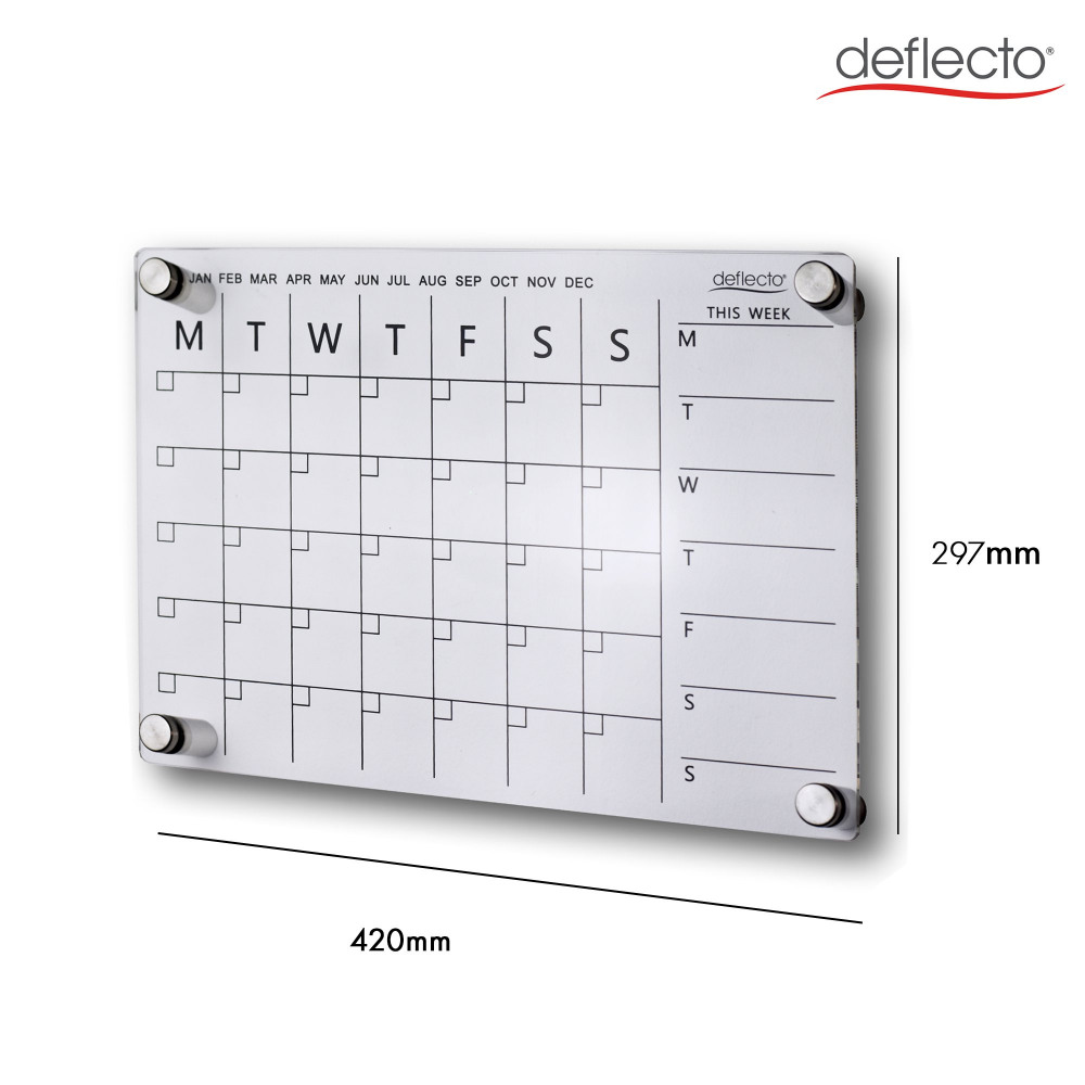 Deflecto A3 Acrylic Weekly/Monthly Planner Wall Mounted 420 x 297mm - WPMA3WM