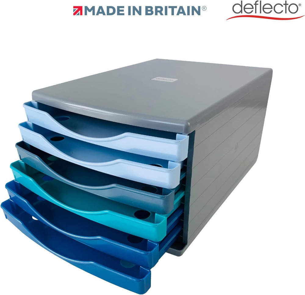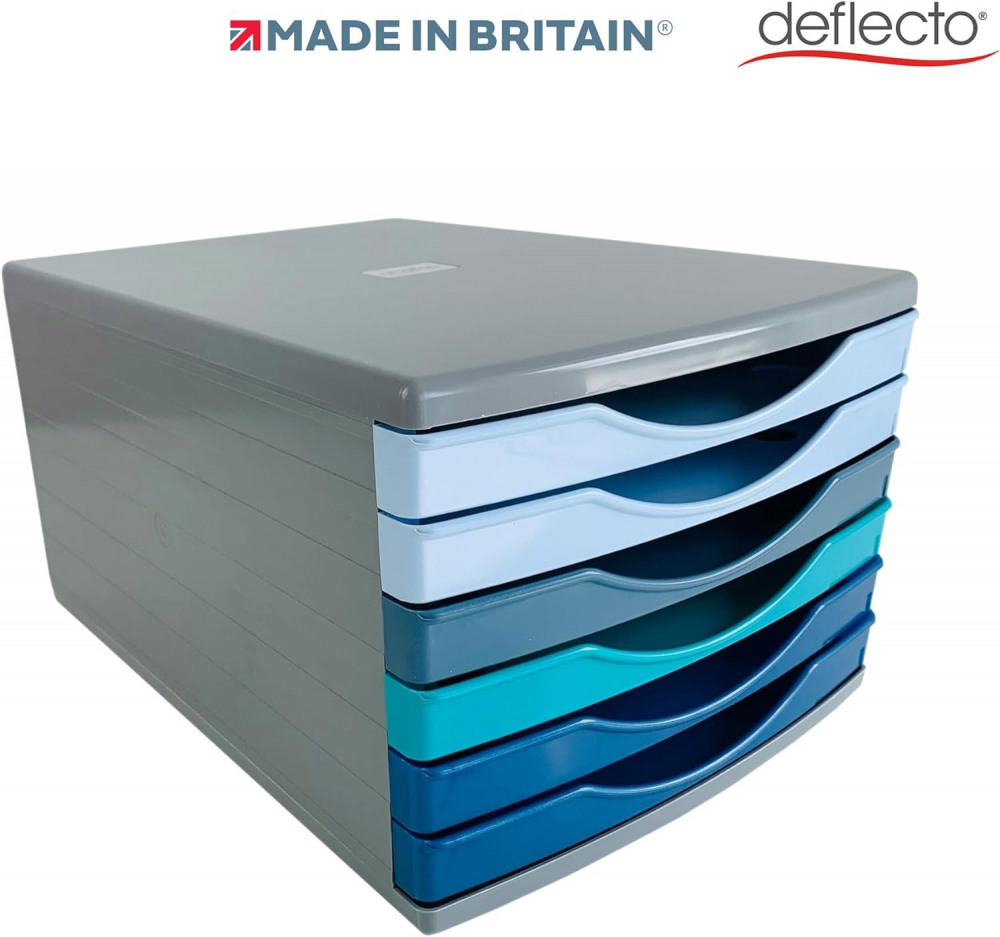 Deflecto Cool Breeze A4 Desktop Drawer Organiser 6 Drawers - 6 x 30mm Drawer Tower Unit Deep Blue and Aqua - CP146YTCB