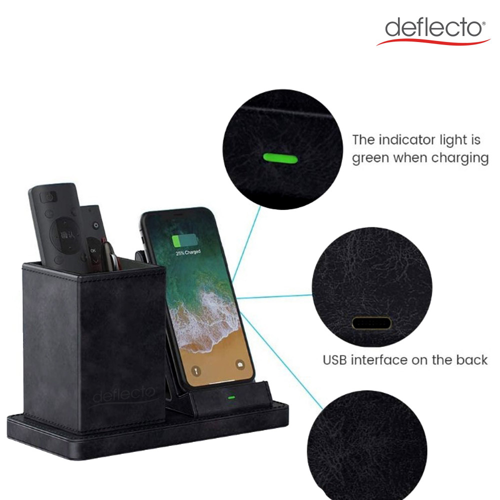 - GREAT FUNCTIONALITY: The Deflecto wireless charging pen holder combines a wireless charging stand with a pen holder. It is easy to store your pens, pencils, scissors, remote control, and more. So the wireless charging station with pen holder is the best choice for home and office. It can provide you with a tidy environment