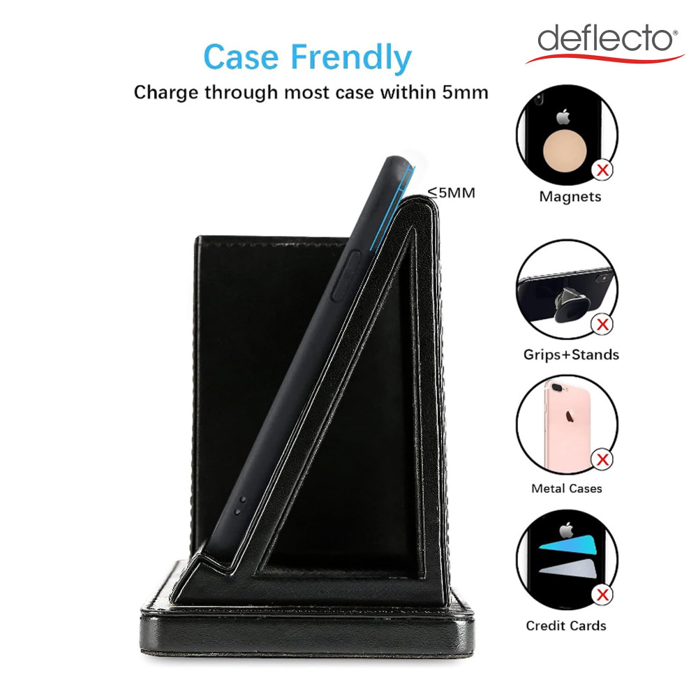 - 3 CHARGING MODES: The Deflecto wireless charging stand has three charging modes of 5W, 7.5W and 10W. It supports iPhone 12/11/11pro/11pro Max/X/Xs/Xs Max/XR/8/8 Plus, and Samsung Galaxy S10/S10+/S9/S9+/S8/S8+/S7/S7 edge/S6/S6 edge and other QI-enabled devices