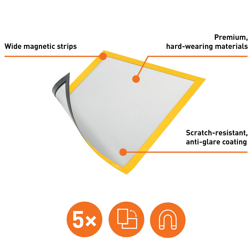 Durable DURAFRAME Magnetic Frame Sign & Document Holder A4 Yellow (Pack 5) - 486904