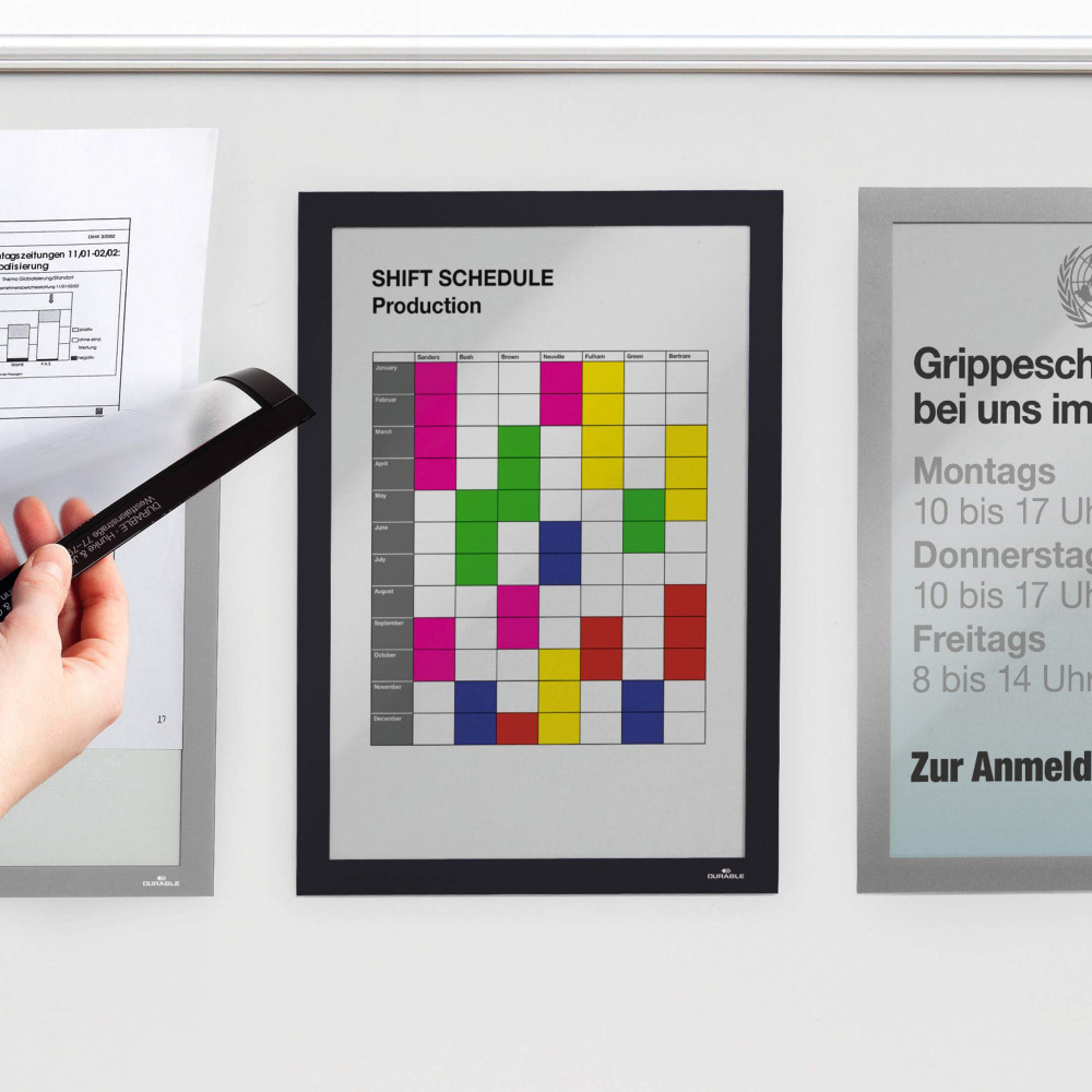- VERSATILE - Education, Offices or Warehouses - featuring anti-glare, spray & scratch-resistant materials DURAFRAME is the most versatile magnetic frame in the UK