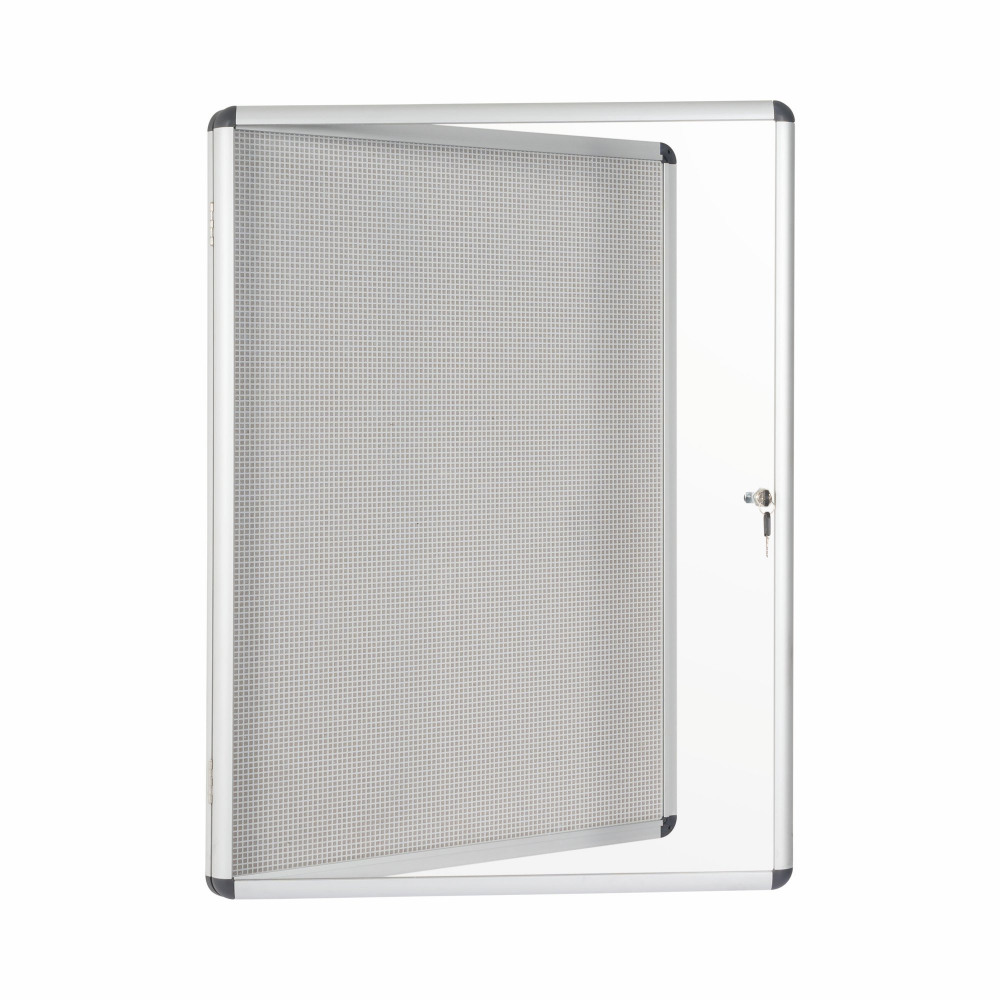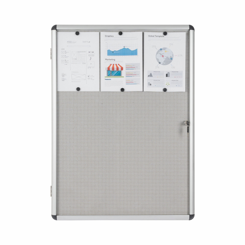 - Bi-Office brings you the Enclore range to provide you with a strong, secure and lightweight solution for a best-selling lockable notice board.The product has a 2 in 1 surface: gridded metal with cork for use with both magnets and push pins. A strong acrylic double-door provides superior visibility to displayed material. This lockable display case has a usable internal depth of 18mm, total depth of 35mm. It is also lockable and supplied with 2 keys for extra safety