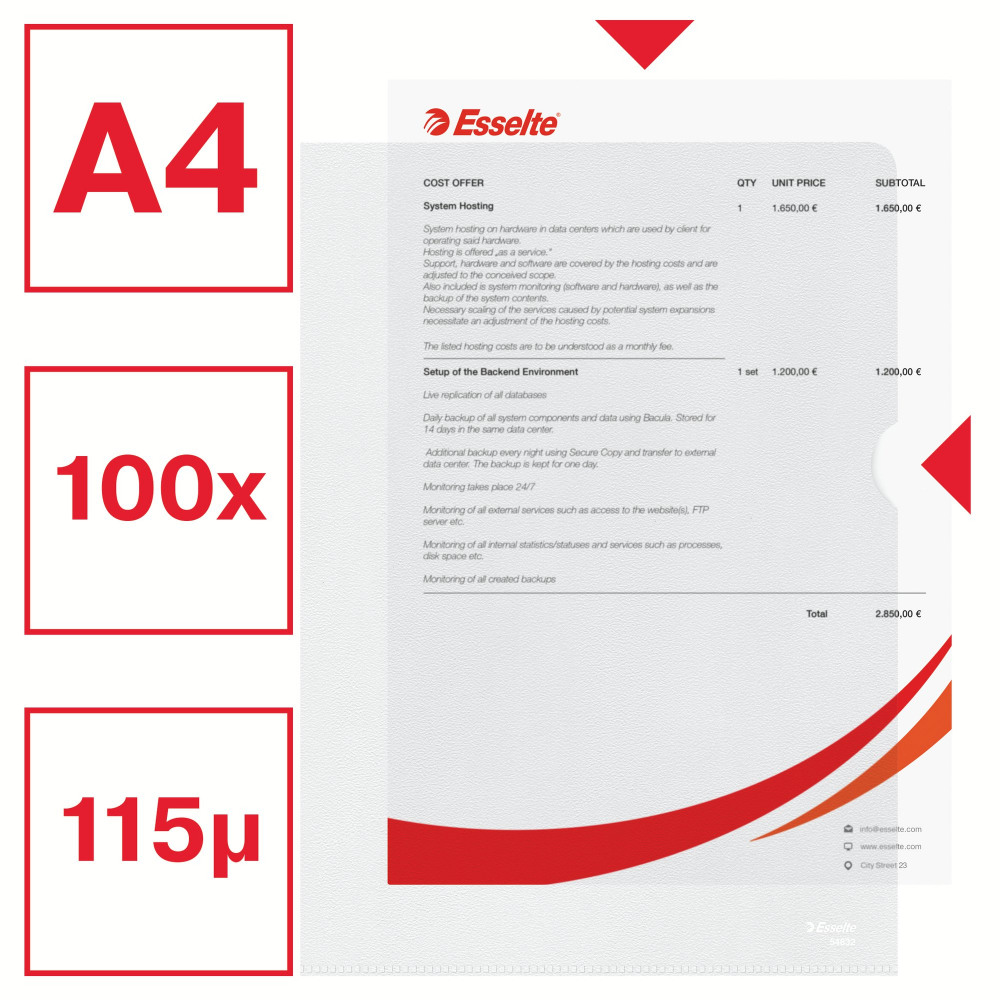 Esselte Embossed Folders A4 Clear (Pack of 100) 54832