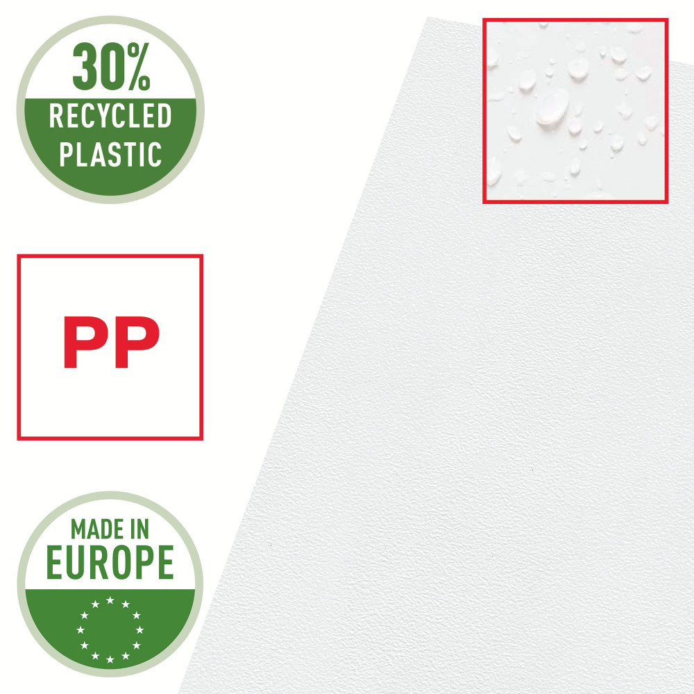 - Heavy duty, 115 micron polypropylene ensures the folder can be re-used over and over again