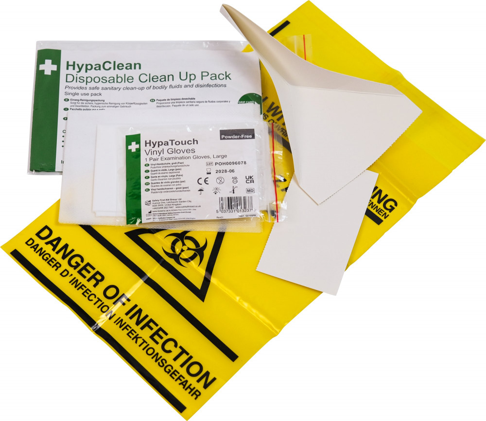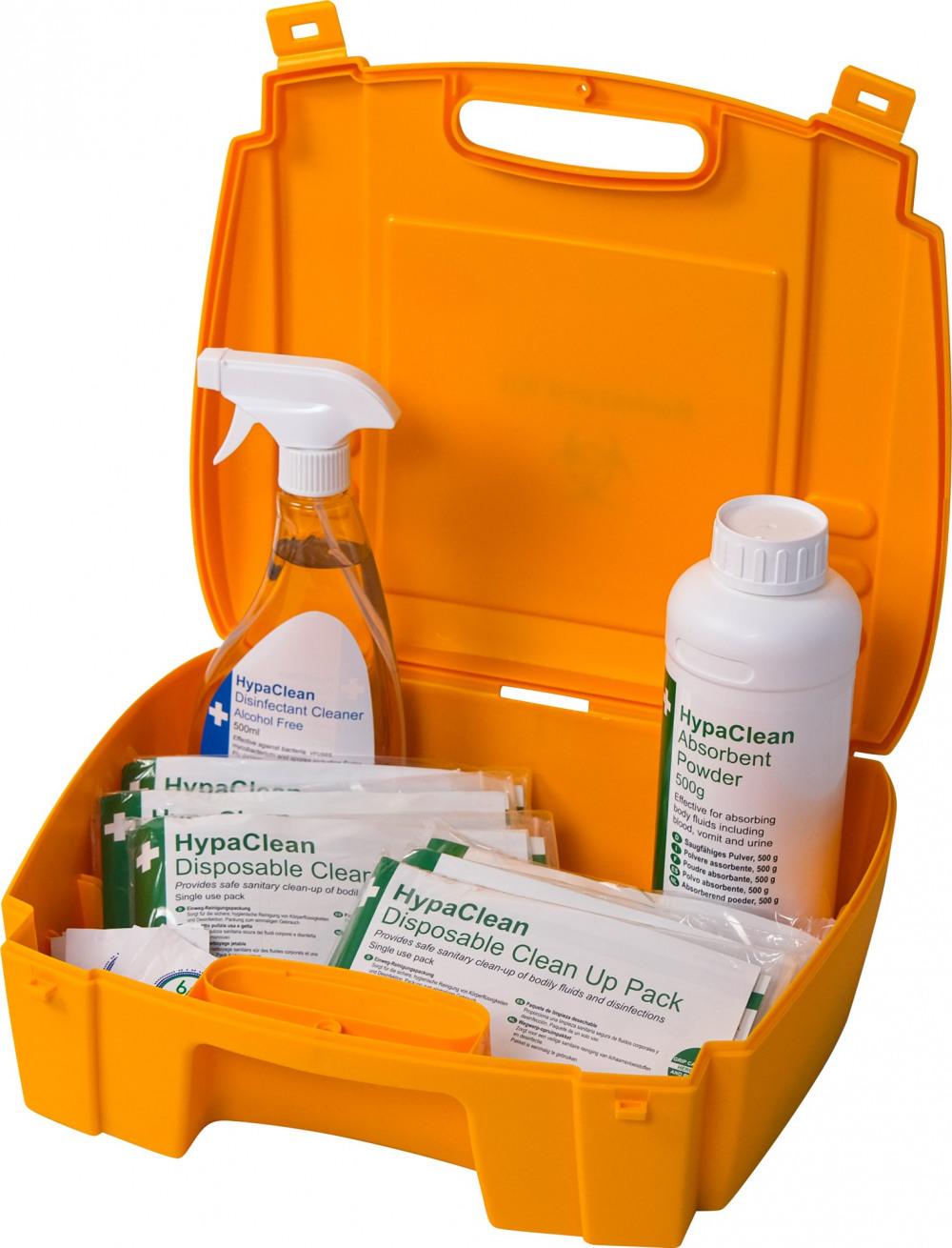 - Contains HypaClean Disposable Clean Up Packs, disinfectant spray and deodorising absorbent granules - Capable of cleaning up to 6 spills