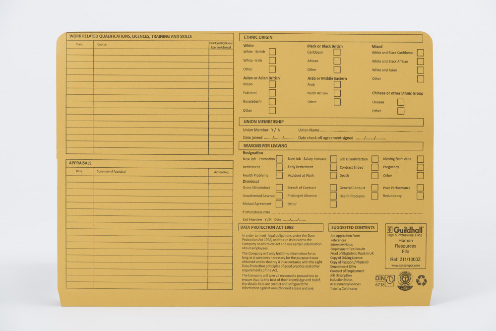 Exacompta Guildhall Pre-Printed Human Resources File 315gsm Yellow (Pack of 50) 211/1300Z