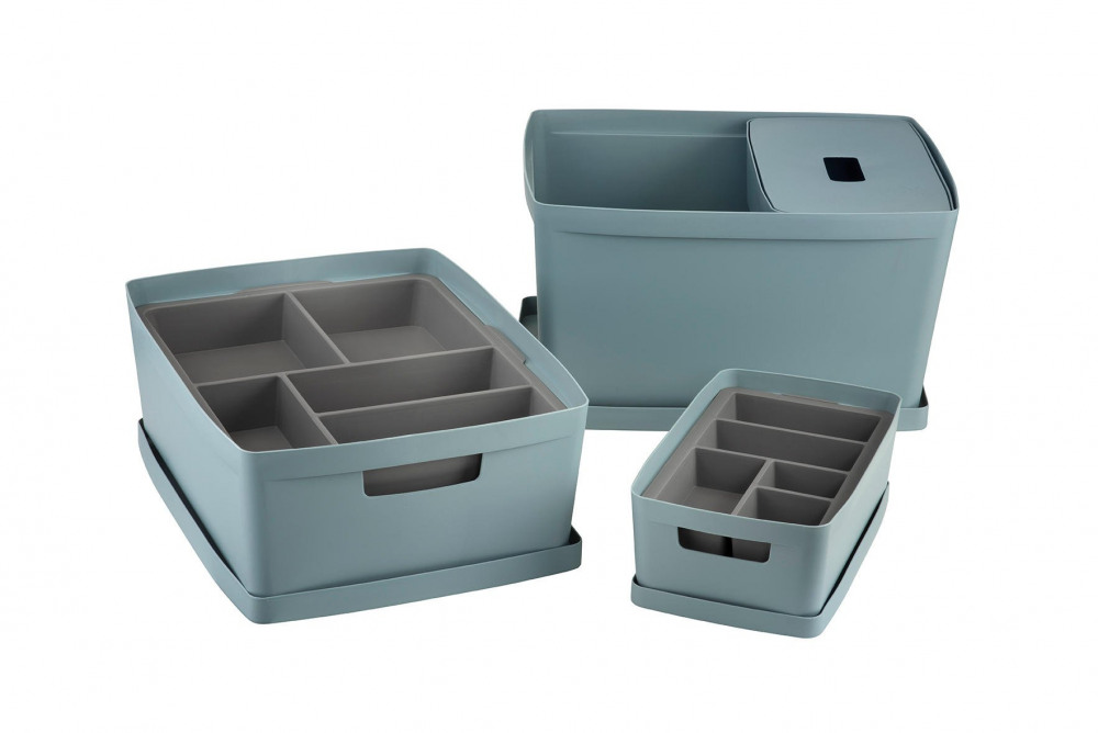 Inabox Designer Storage Boxes With Lids and Trays Small Value Pack (2 x 5L & 1 x 19L & 1 x 28L & 1 x Small & 1 x Large Tray) Cottage Blue - H-I60649