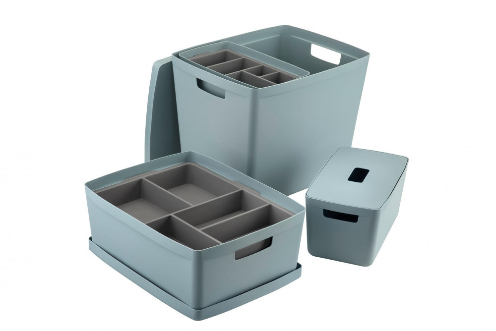 Inabox Designer Storage Boxes With Lids and Trays Large Value Pack (2 x 8L & 1 x 19L & 1 x 39L & 1 x Small & 1 x Large Tray) Cottage Blue - H-I60650