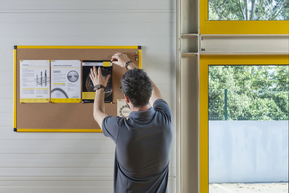 Bi-Office Industrial Ultrabrite Cork Board Yellow Aluminium Frame 90x60cm CA0311721