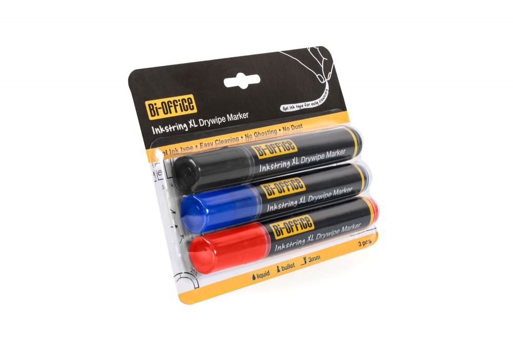 Bi-Office Inkstring XL Drywipe Marker Assorted Colours (Pack of 3) PE4004