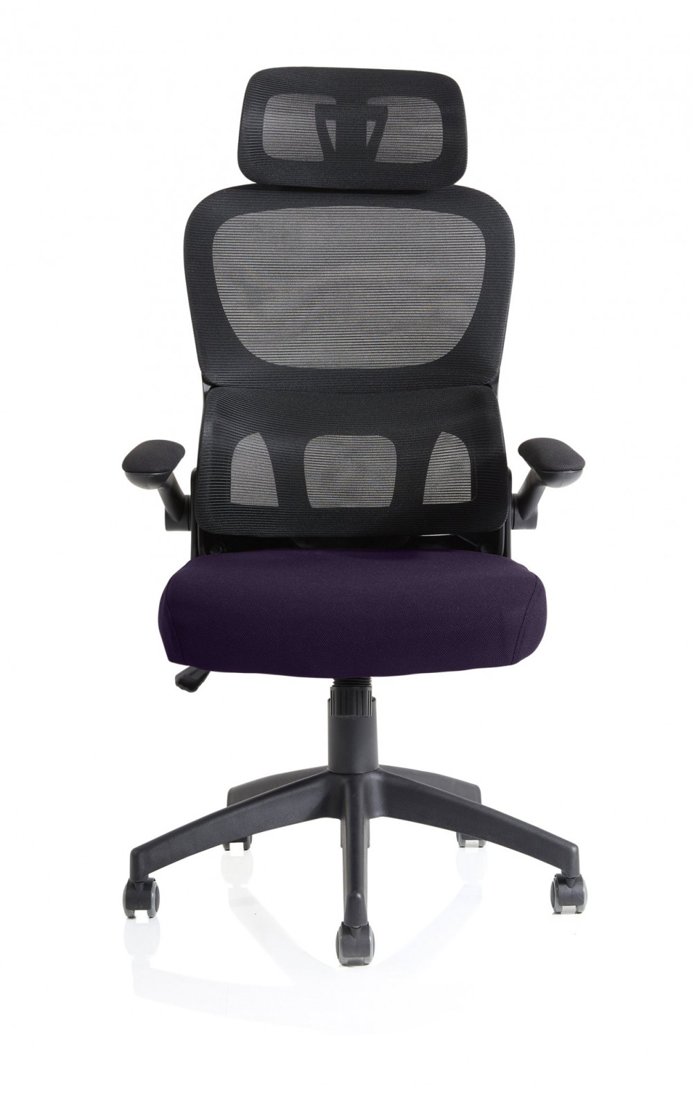Iris Mesh Back Task Operator Office Chair Bespoke Tansy Purple Fabric Seat With Headrest - KCUP2039