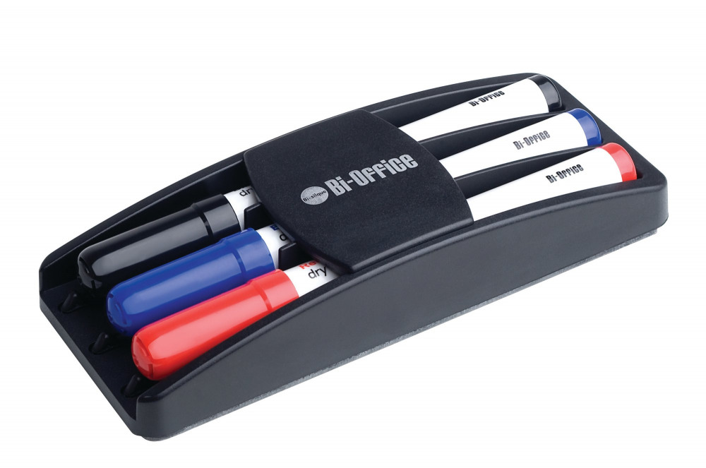 Bi-Office Magnetic Pen Holder with Eraser and 3 Drywipe Markers AA0106