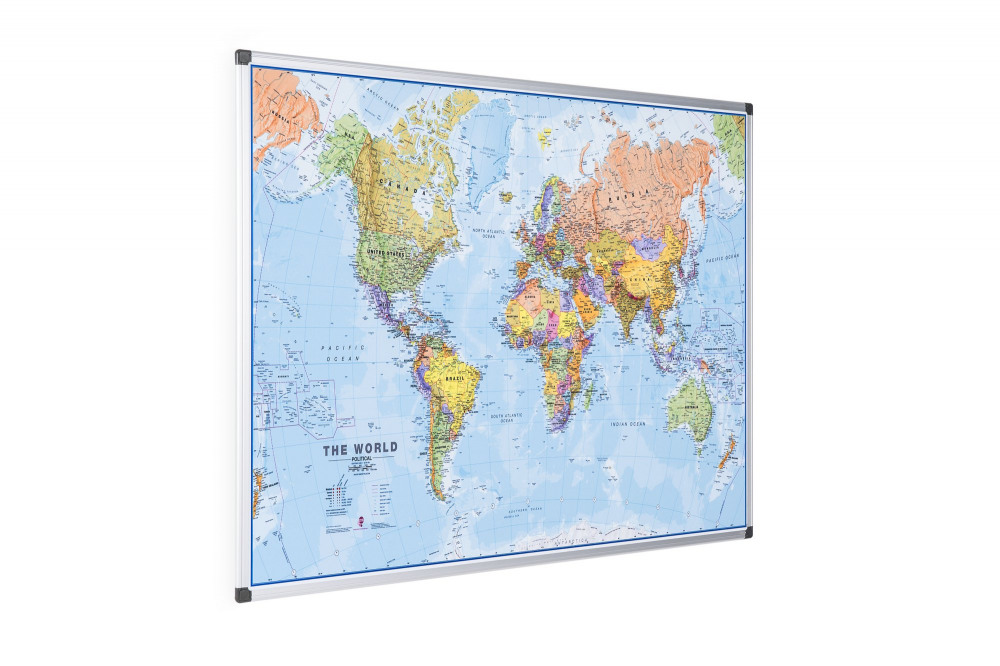 • World Map with a high-quality dry wipe magnetic surface ideal for frequent use