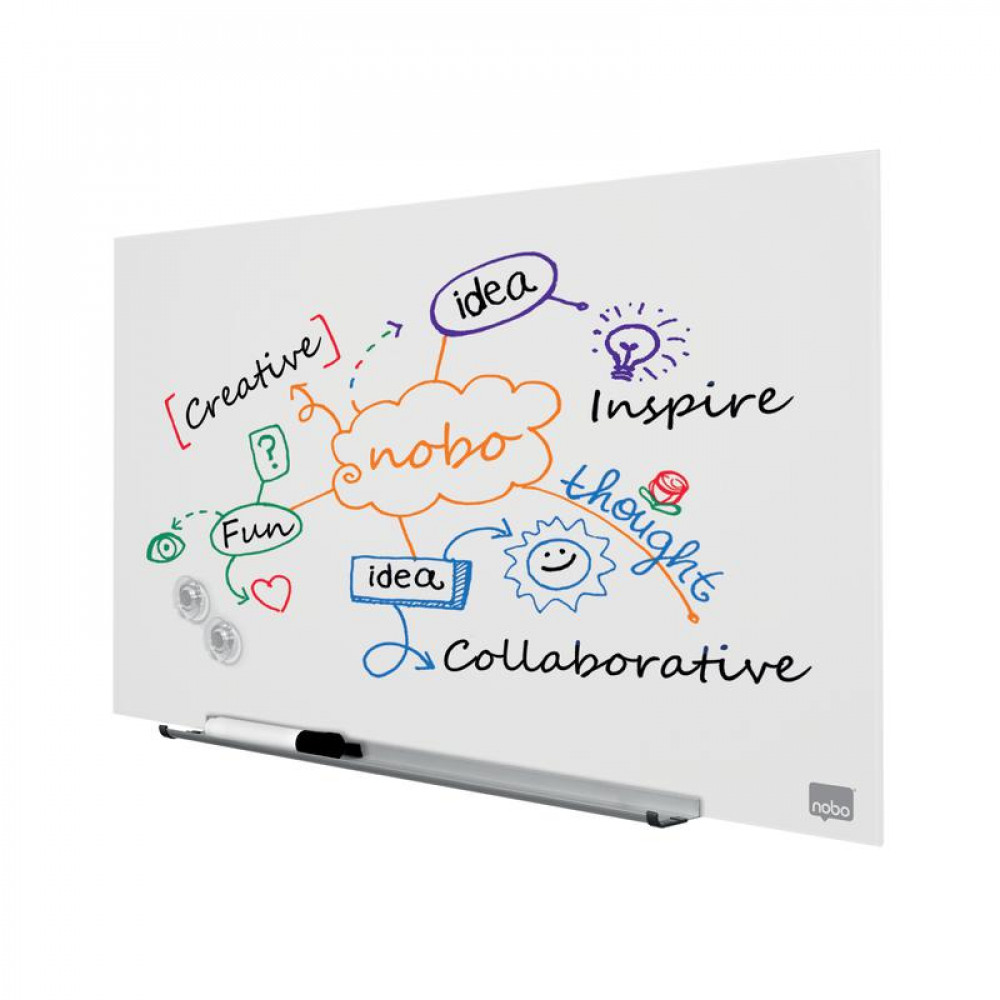 - Glass magnetic whiteboard surface with ultra-erasability with the highest resistance to ink stains, pen marks, scratches and dents