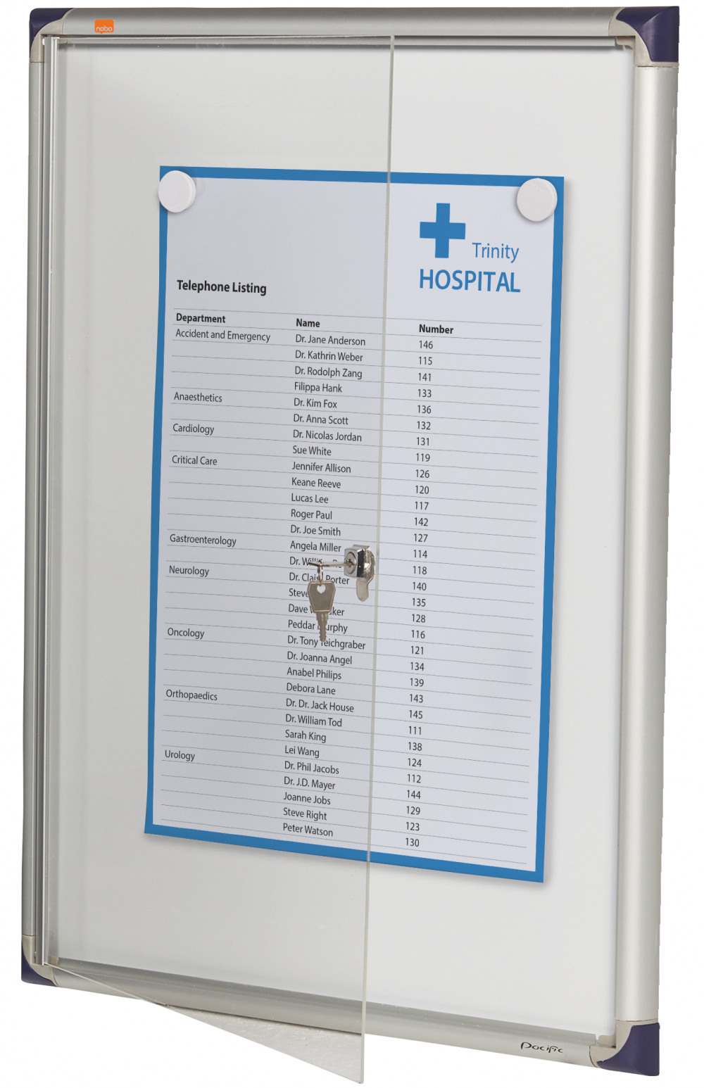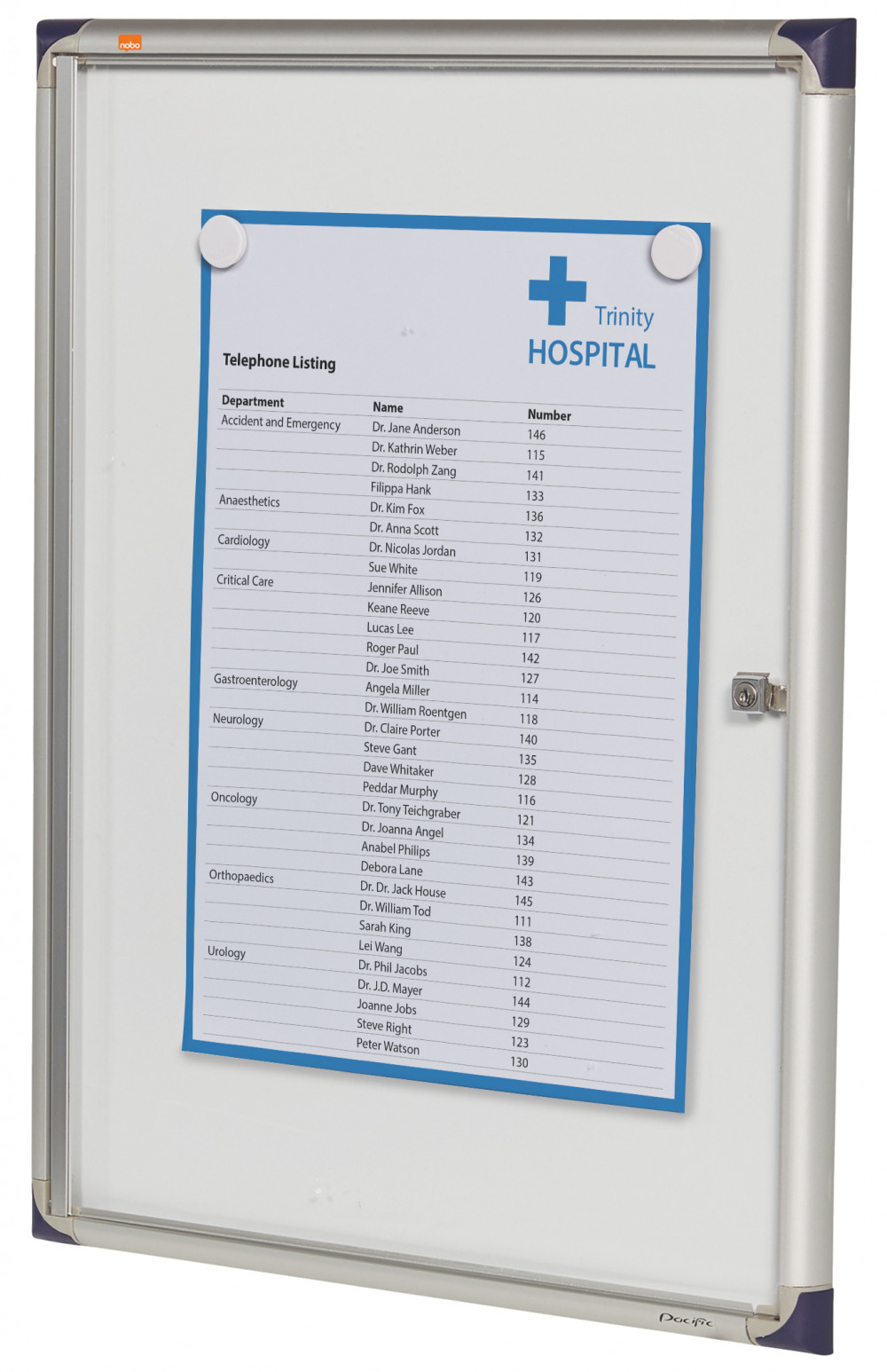 Nobo Extra Flat Magnetic Whiteboard Display Case Lockable 4 x A4 550x735mm 1900846