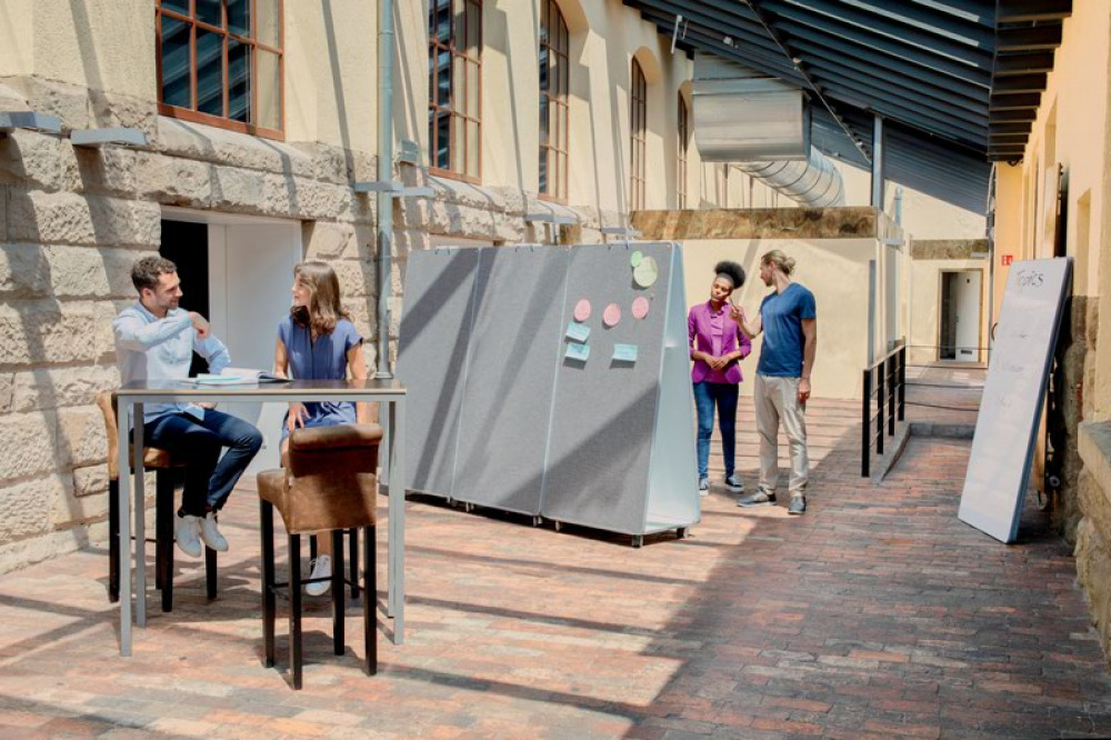 - System holds up to 4x double sided portable boards, providing 8 writing and collaboration areas
