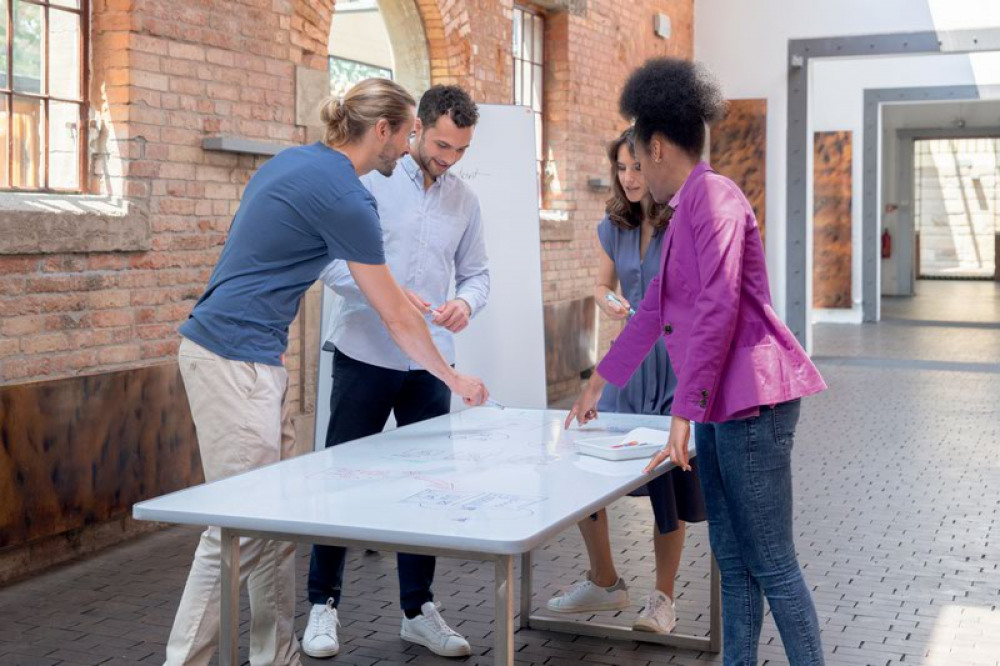 - Offering flexibility and collaboration, holding up to 4 removable double-sided whiteboards or notice boards combination
