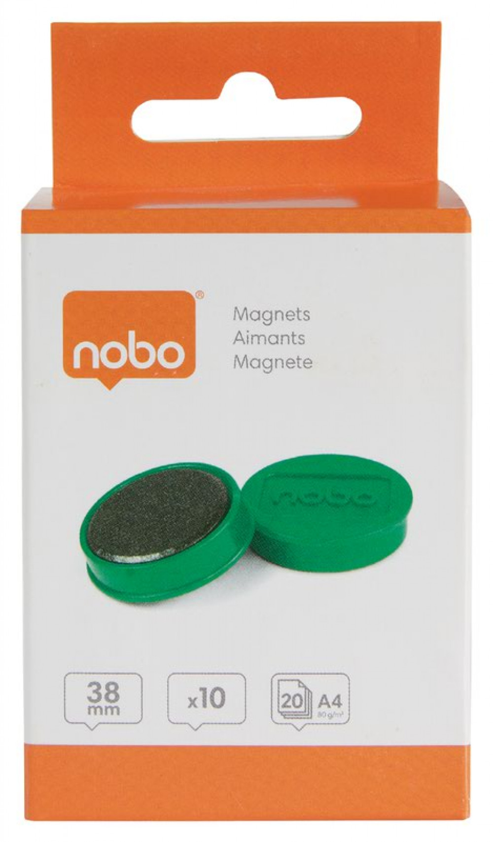 NOBO WHITEBOARD MAGNETS 38MM GREEN PK10