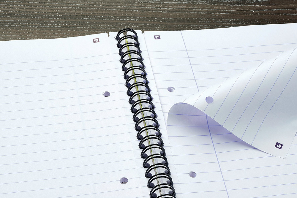 - Strong wire binding that allows the book to lay flat or fold back to save space when writing notes