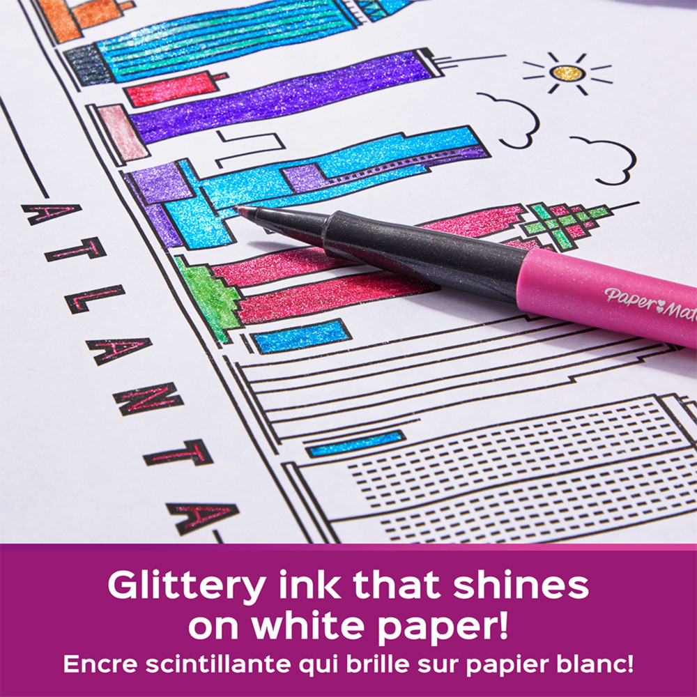 - Metallic felt tip pens with glittery ink that shines on white paper
