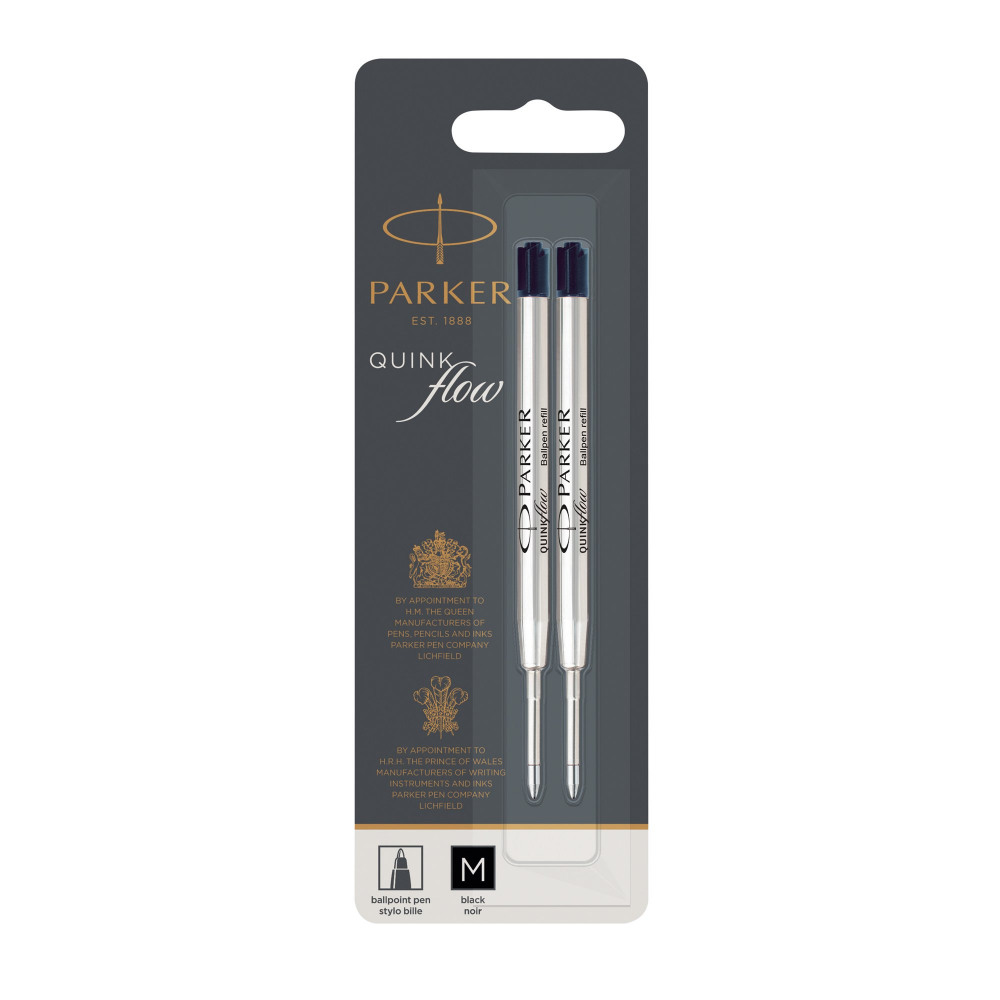 Parker Quink Flow Ballpoint Refill for Ballpoint Pens Medium Black (Pack 2) - 1950372
