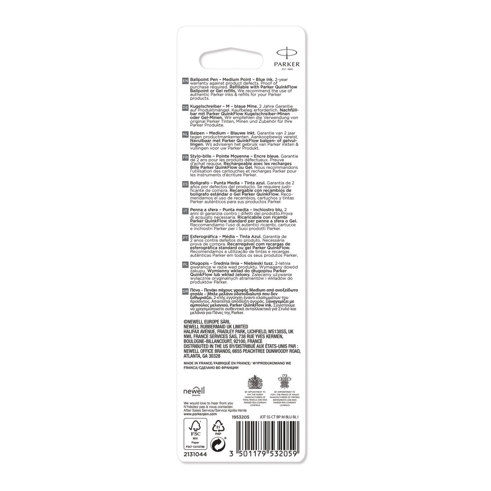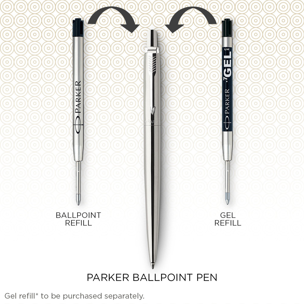 - Fitted with Quinkflow ballpoint refill for optimal ink flow and a smooth writing experience; blue ink; medium tip; also accepts PARKER gel refills
