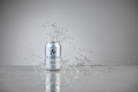 - Printed aluminium can with silver top and navy blue ring pull tab