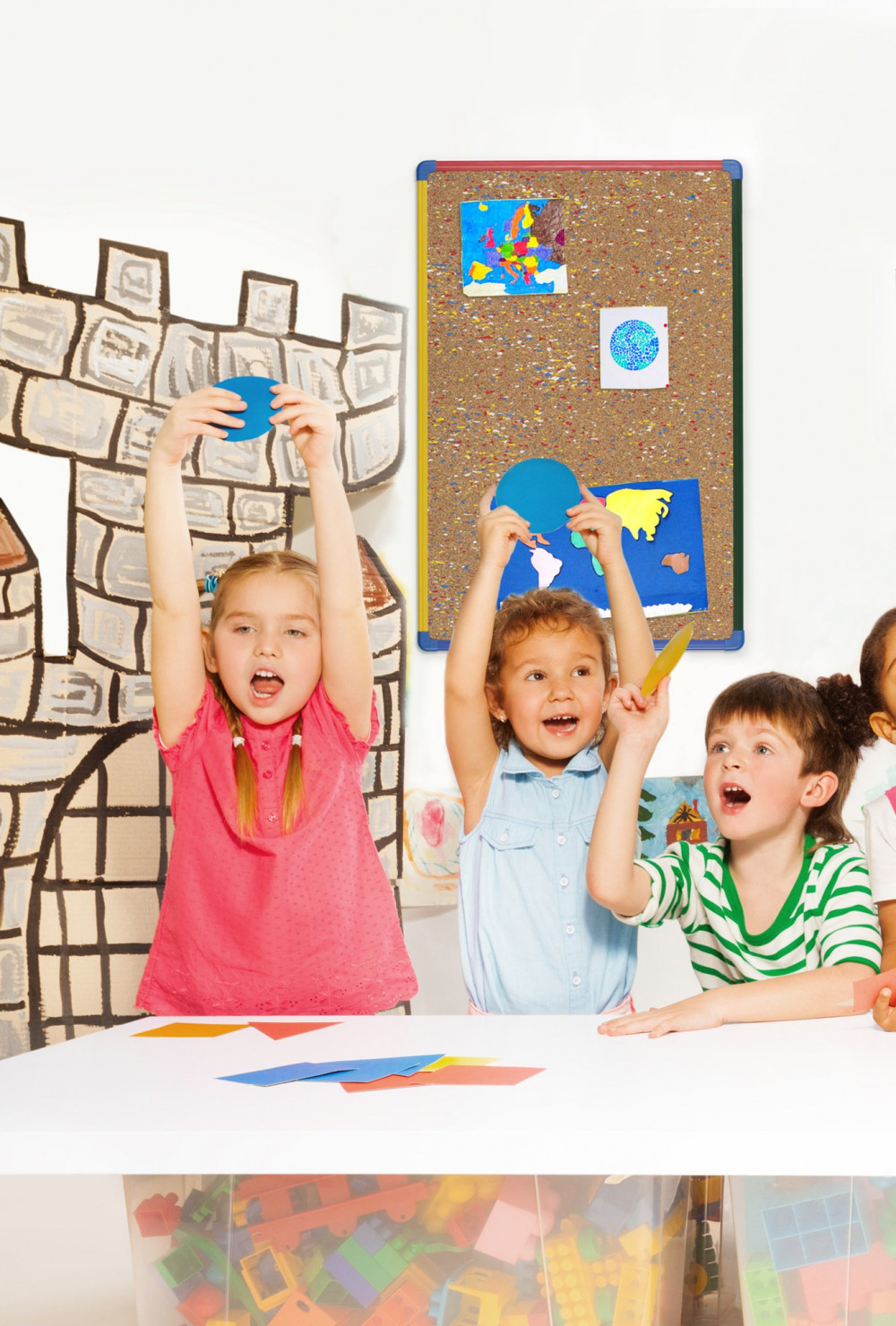 - To grab your students attention, this notice board has a cork material with brightly coloured spots