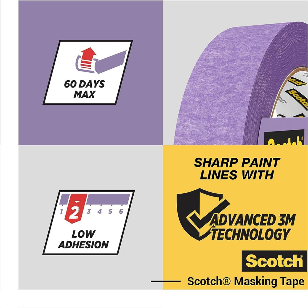 - TAPE APPLICATION TIPS: For great paint results make sure the surface is clean, dry and dust-free so that the tape sticks properly. Next, apply the tape onto the surface while pressing down firmly as you go. And lastly, let the tape set for about 30 to 60 minutes before painting