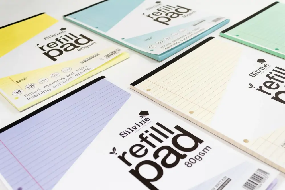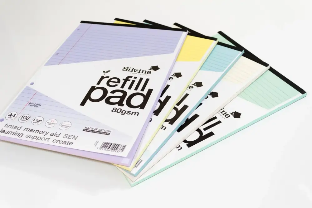 Silvine SEN Refill Pad A4 With Tinted Coloured Papers 100 Page In 5 Assorted Colours Ruled With Margin 4 Hole Punched (Pack 5) - A4RPTINAC