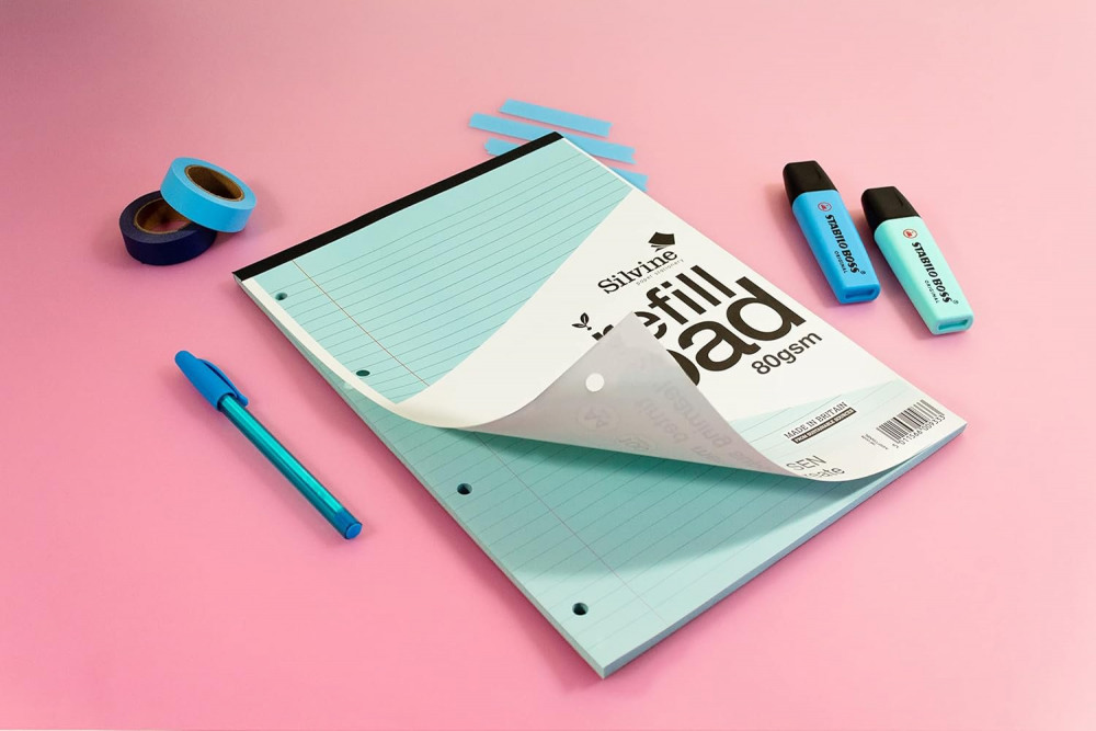 Silvine SEN Refill Pad A4 With Tinted Coloured Papers 100 Page Ruled With Margin 4 Hole Punched Blue (Pack 6) - A4RPTINBL