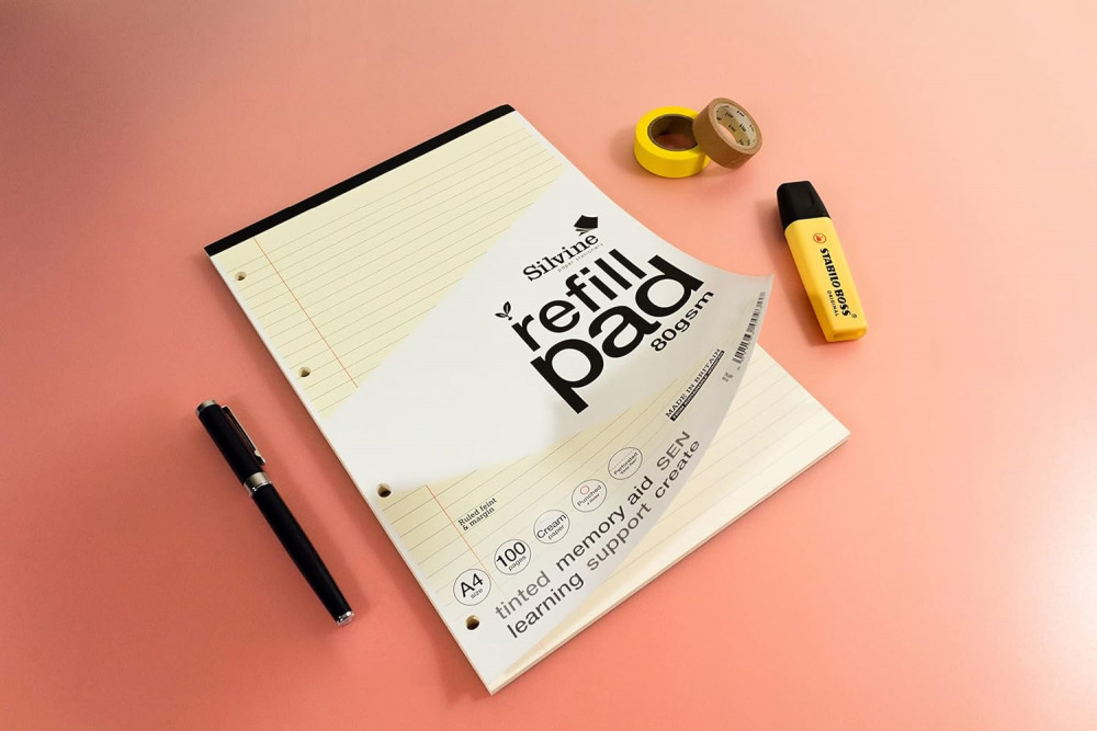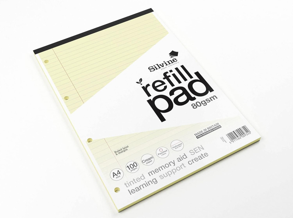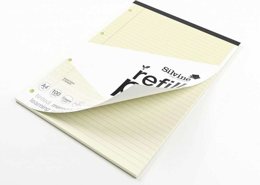 Silvine SEN Refill Pad A4 With Tinted Coloured Papers 100 Page Ruled With Margin 4 Hole Punched Cream (Pack 6) - A4RPTINC