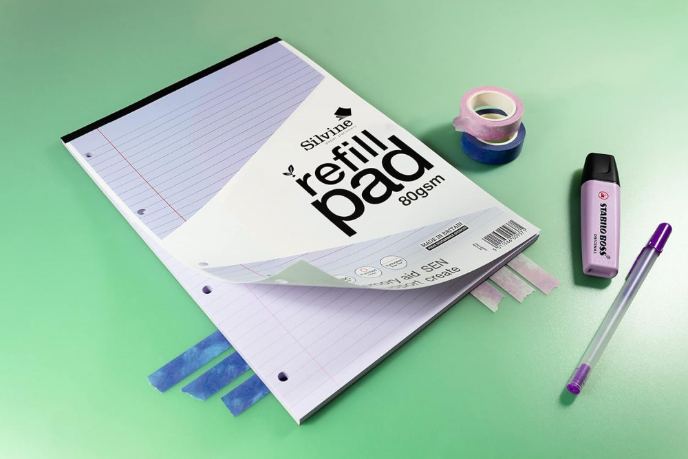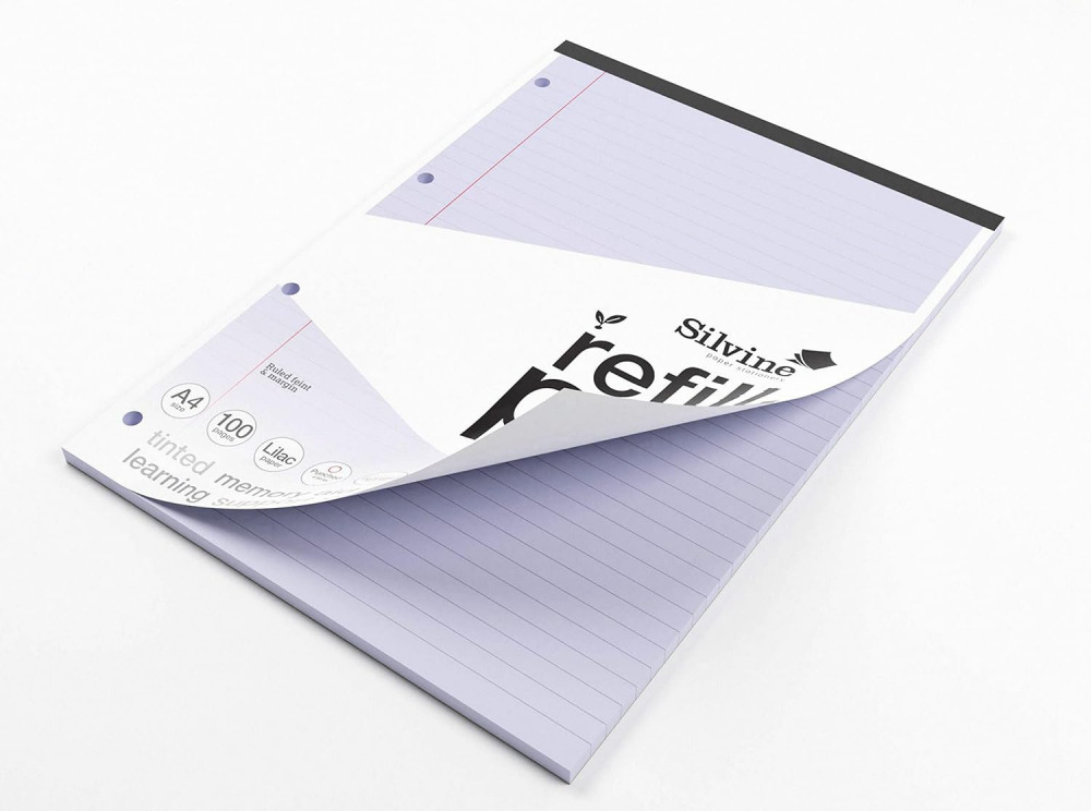 Silvine SEN Refill Pad A4 With Tinted Coloured Papers 100 Page Ruled With Margin 4 Hole Punched Lilac (Pack 6) - A4RPTINV