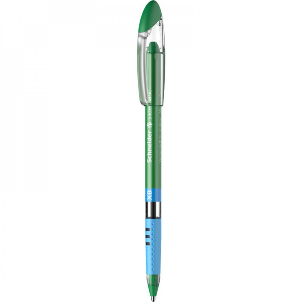 Schneider Slider Basic XB Ballpoint Pen Extra Broad Tip Green Ink with Rubberised Grip Zones (Pack 10) - 151204