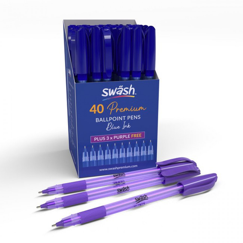Swash Premium Triangular Medium Tip Ballpoint Pens Blue Plus 3 FREE Purple Ballpoint Pens (Pack 40+3 FREE) - BBT40BU