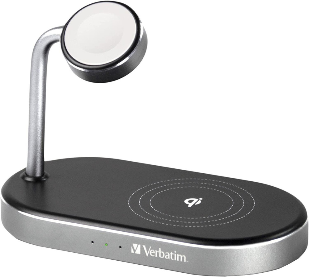 Verbatim WCS-02 Aluminium 3-in-1 Qi MFi Wireless + Apple Watch + QC 3.0 Charging Station 49556