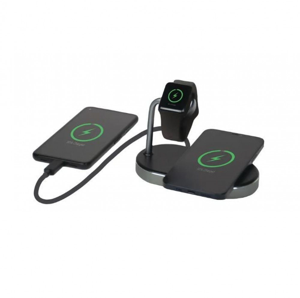 - 3-in-1: Wirelessly charge your Apple Watch, iPhone (8 or later) or other Qi-certified wireless charging enabled device and one device by cable via the QC 3.0 USB-A port
