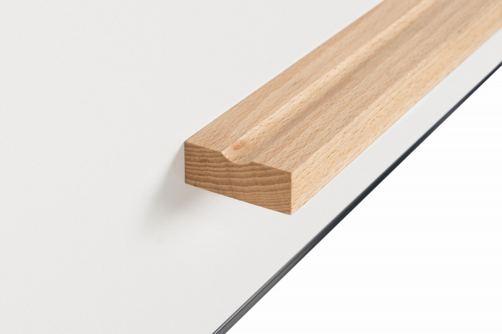 - Adjustable beechwood pen tray for the dry wipe markers and eraser