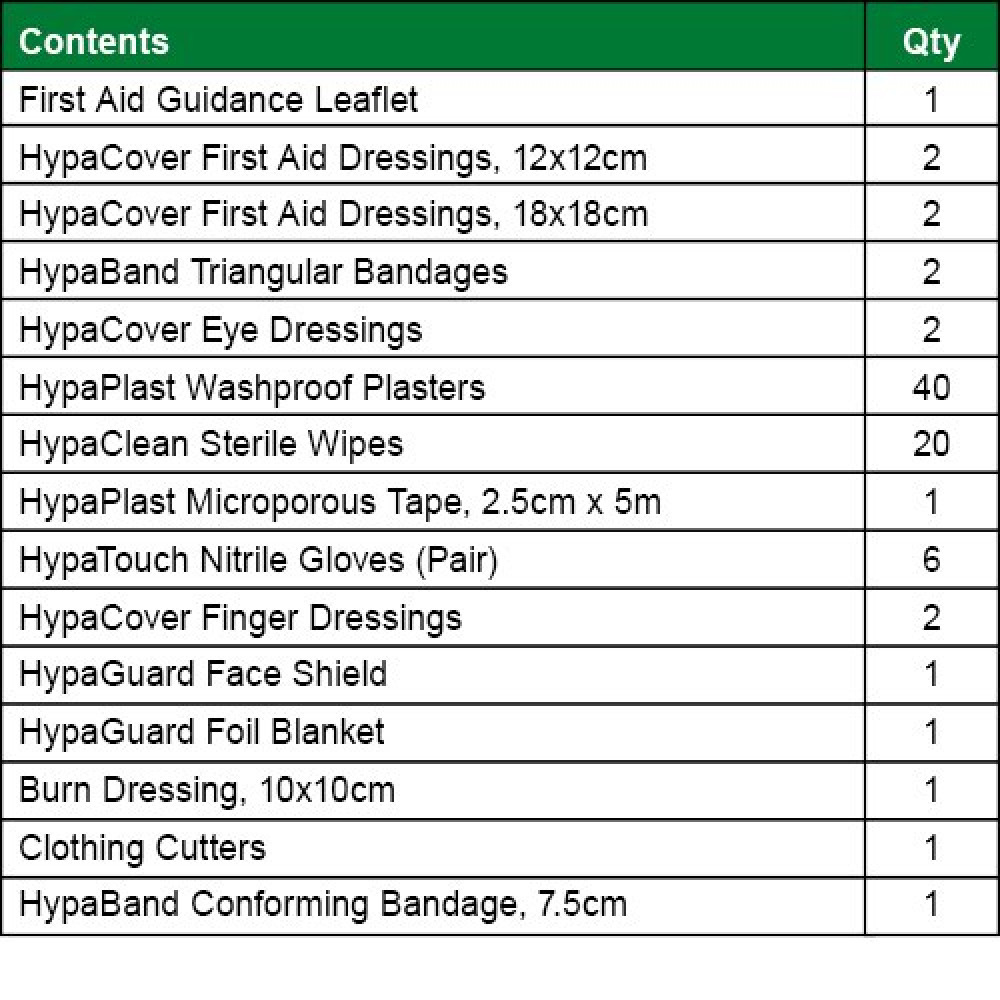 - Small kit appropriate for low-hazard workplaces up to 24 people, or high-hazard workplaces up to 4 people