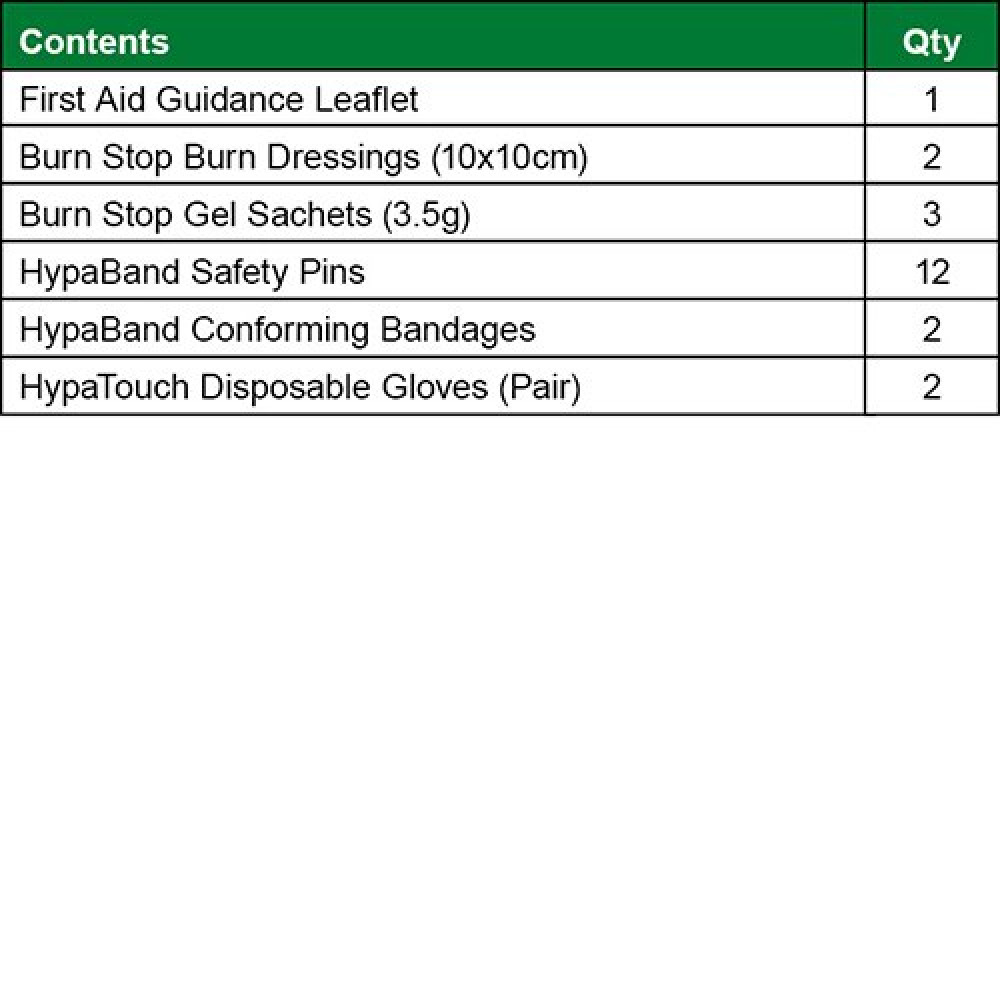 - All kits include Burn Stop burn dressings which are sterile gel impregnated dressings