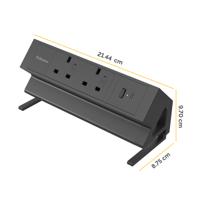 Fellowes Power Desk 2 Type G UK/IE 2 Sockets 1 USB-A + 1 USB-C Port Black 100136987