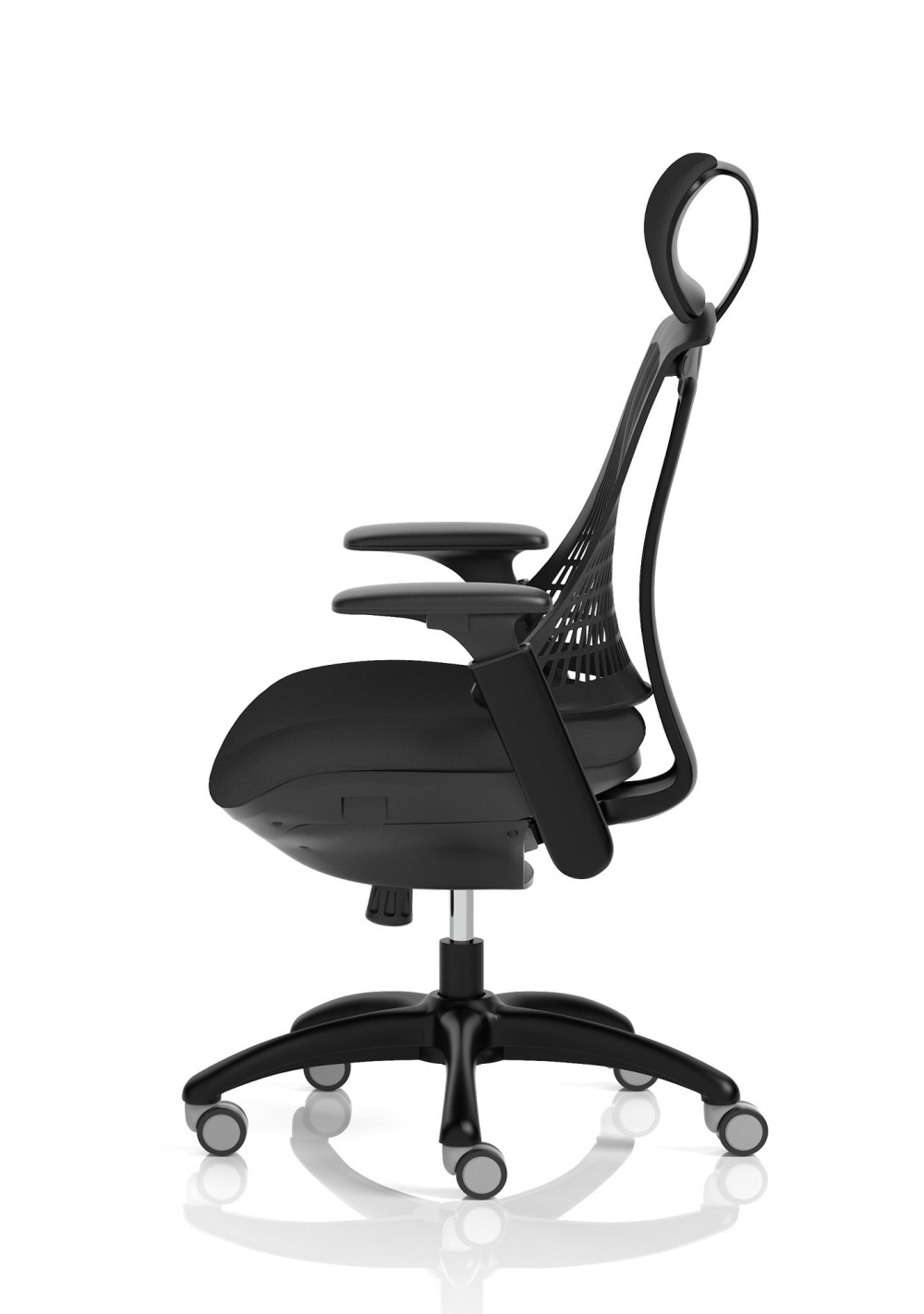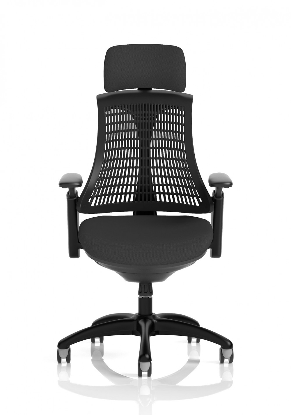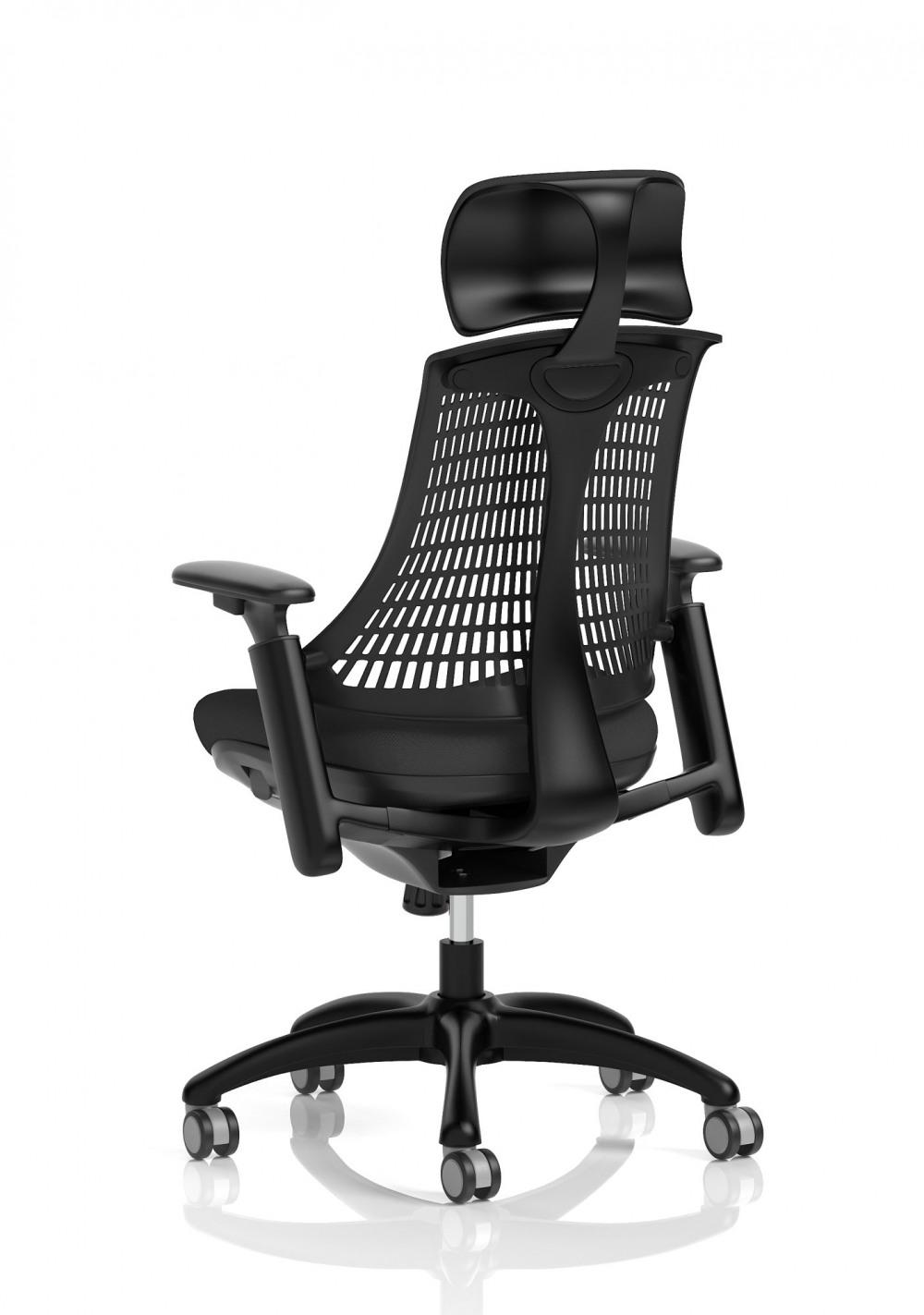 Flex Chair Black Frame With Black Back With Headrest KC0103