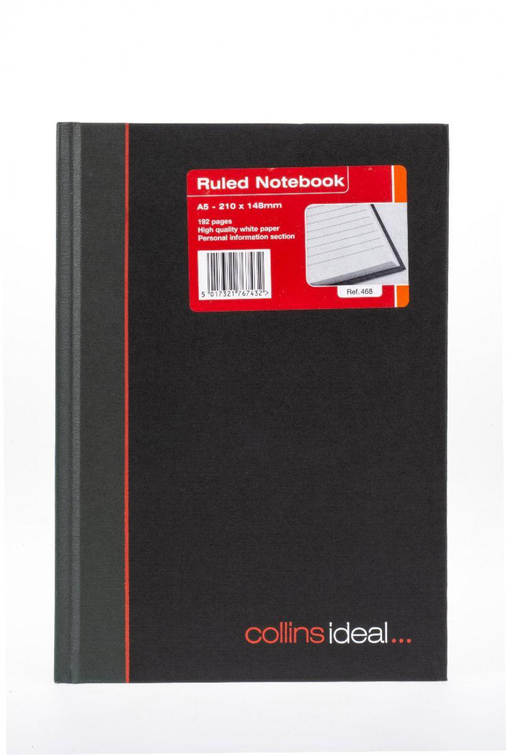 Collins Ideal Manuscript Book Casebound A5 Ruled 192 Pages Black 468 - 811064