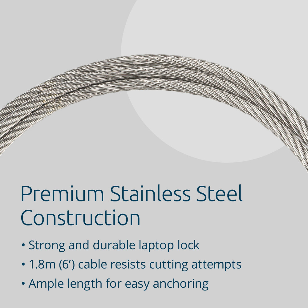 - 1.8m (6') stainless steel cable resists cutting attempts and provides ample length for easy anchoring.
